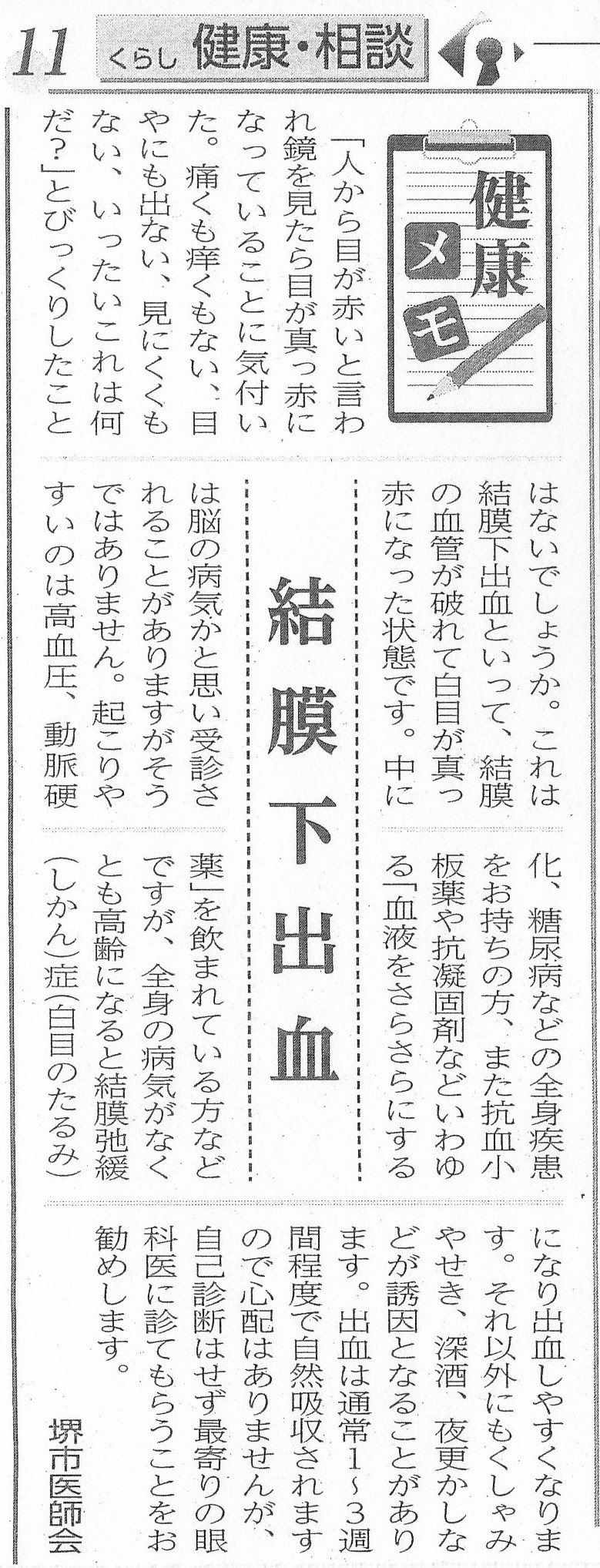 過去に当院院長が『広報さかい』に寄稿した記事を紹介します。